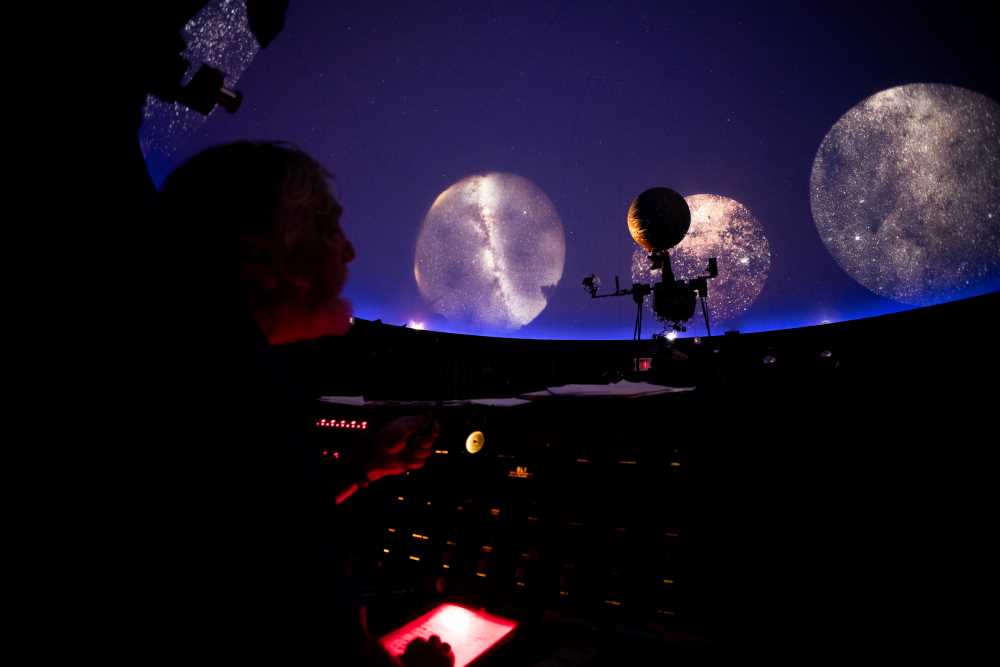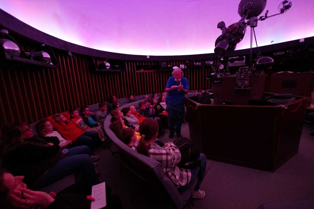 Bob Allen, director of the UWL Planetarium, teaches local students about the night sky.