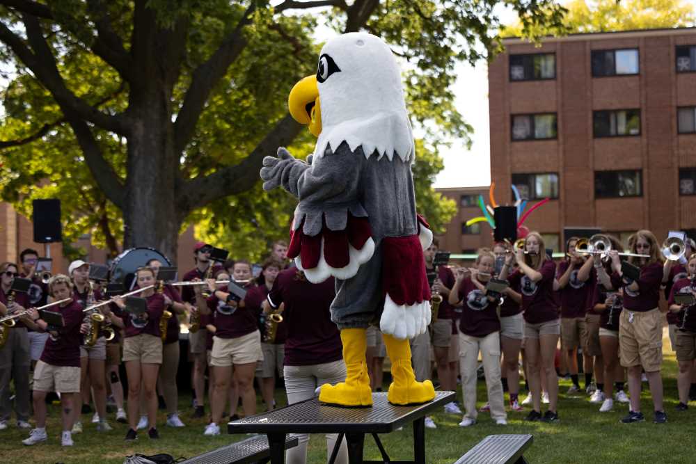 Stryker directing the Screaming Eagles Marching Band at Eagle Fest, UWL's annual welcome celebration.