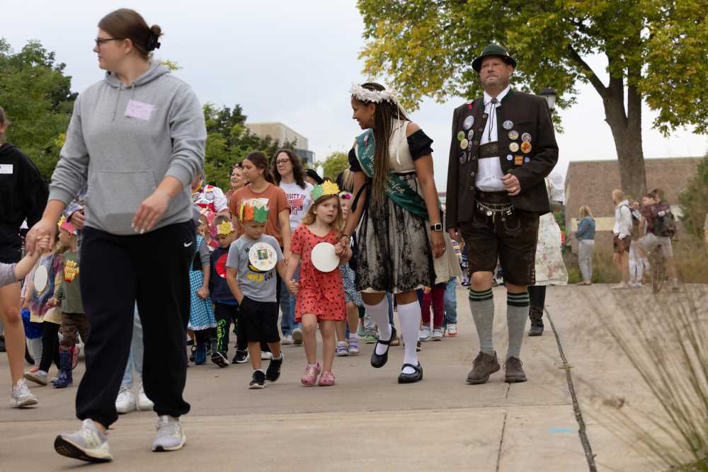 Marching through campus during the UWL Child Center Oktoberfest Parade.