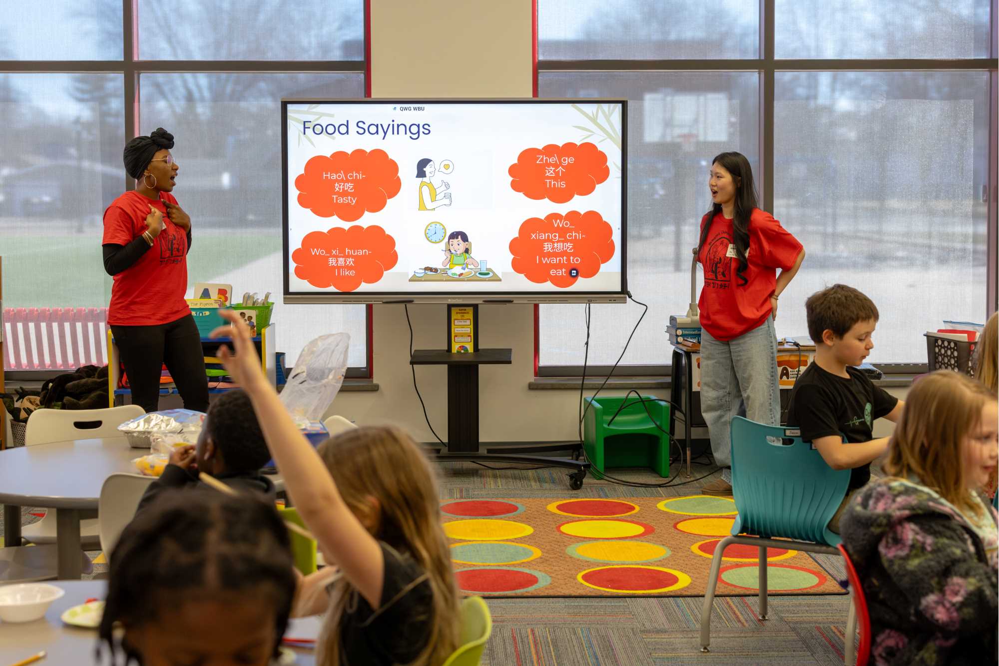 Under the direction Professor Hongying Xu, UWL students teach Chinese language and culture to children at Northside Elementary School in La Crosse.