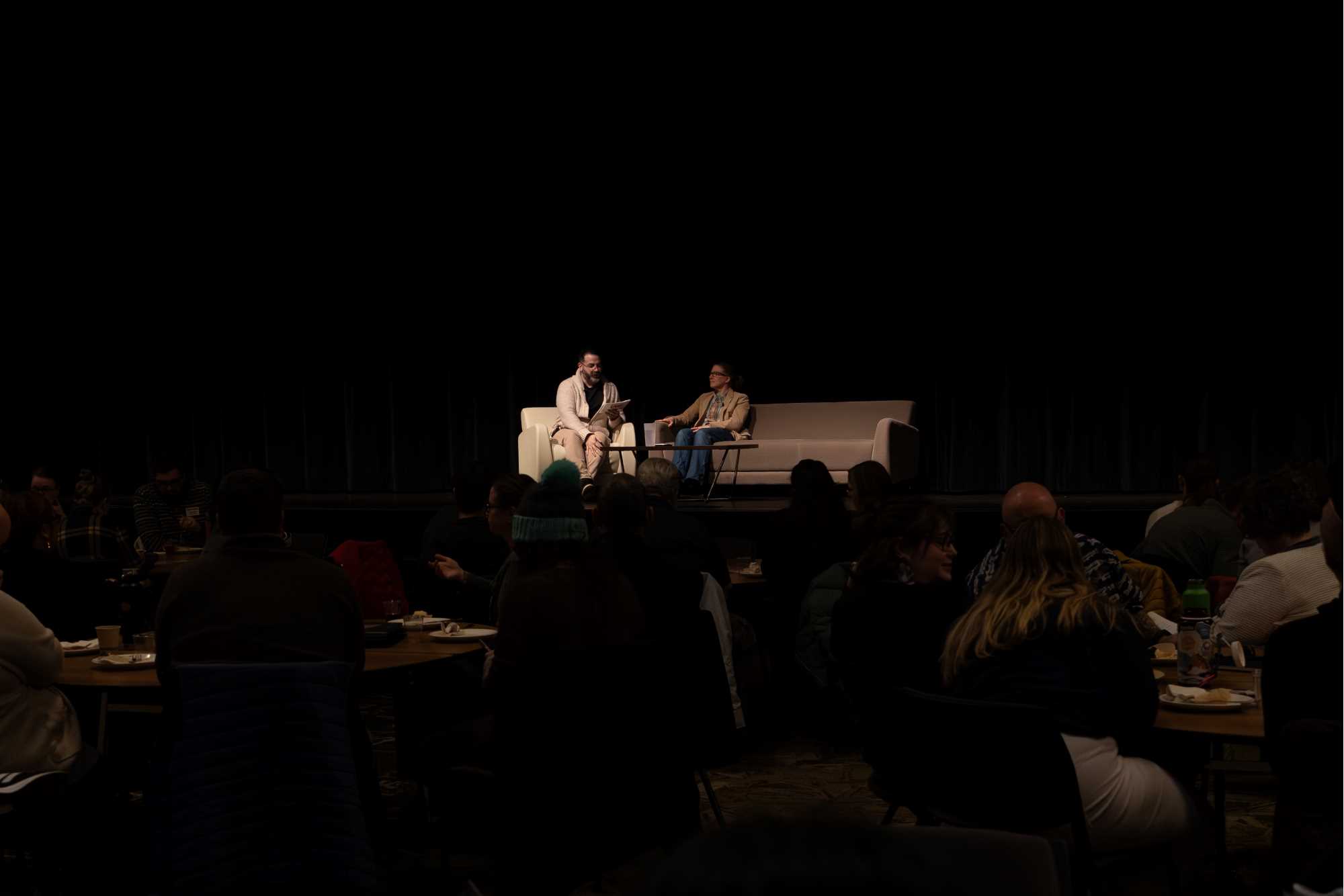 Caleb Colon-Rivera has a Couch Conversation with Eileen Narcotta-Welp, associate professor of exercise and sport science, part of UWL's programming for Women's History Month.