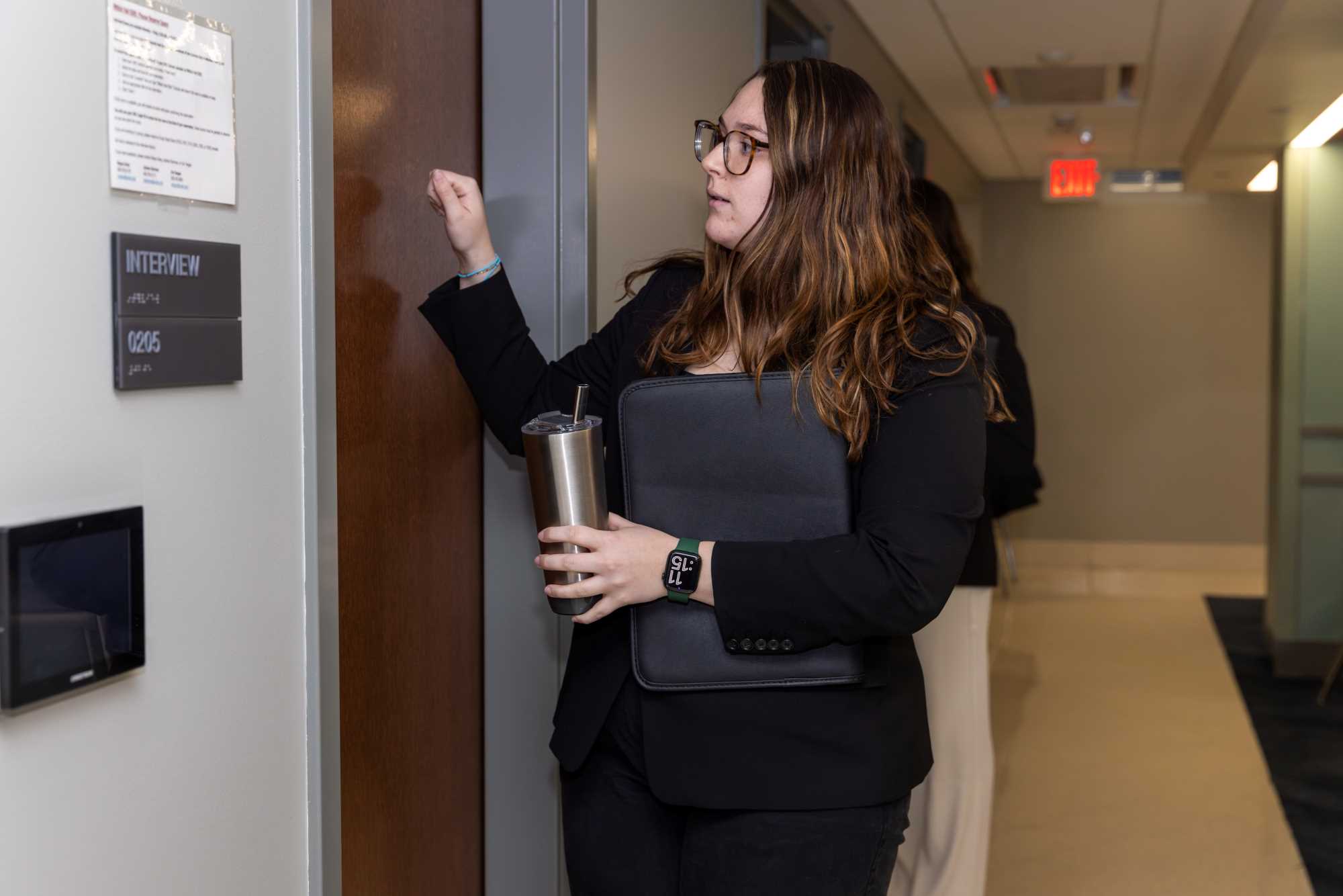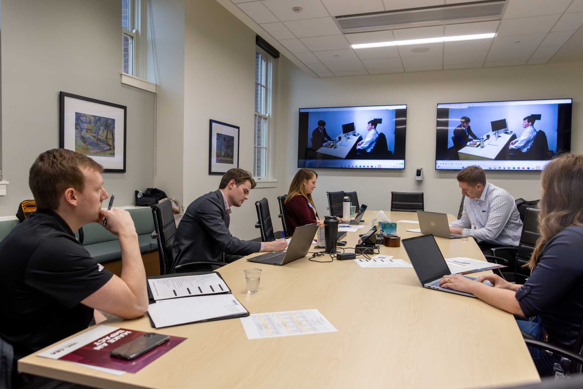 Local business leaders evaluate College of Business Administration students during the Eagle Sales Competition.