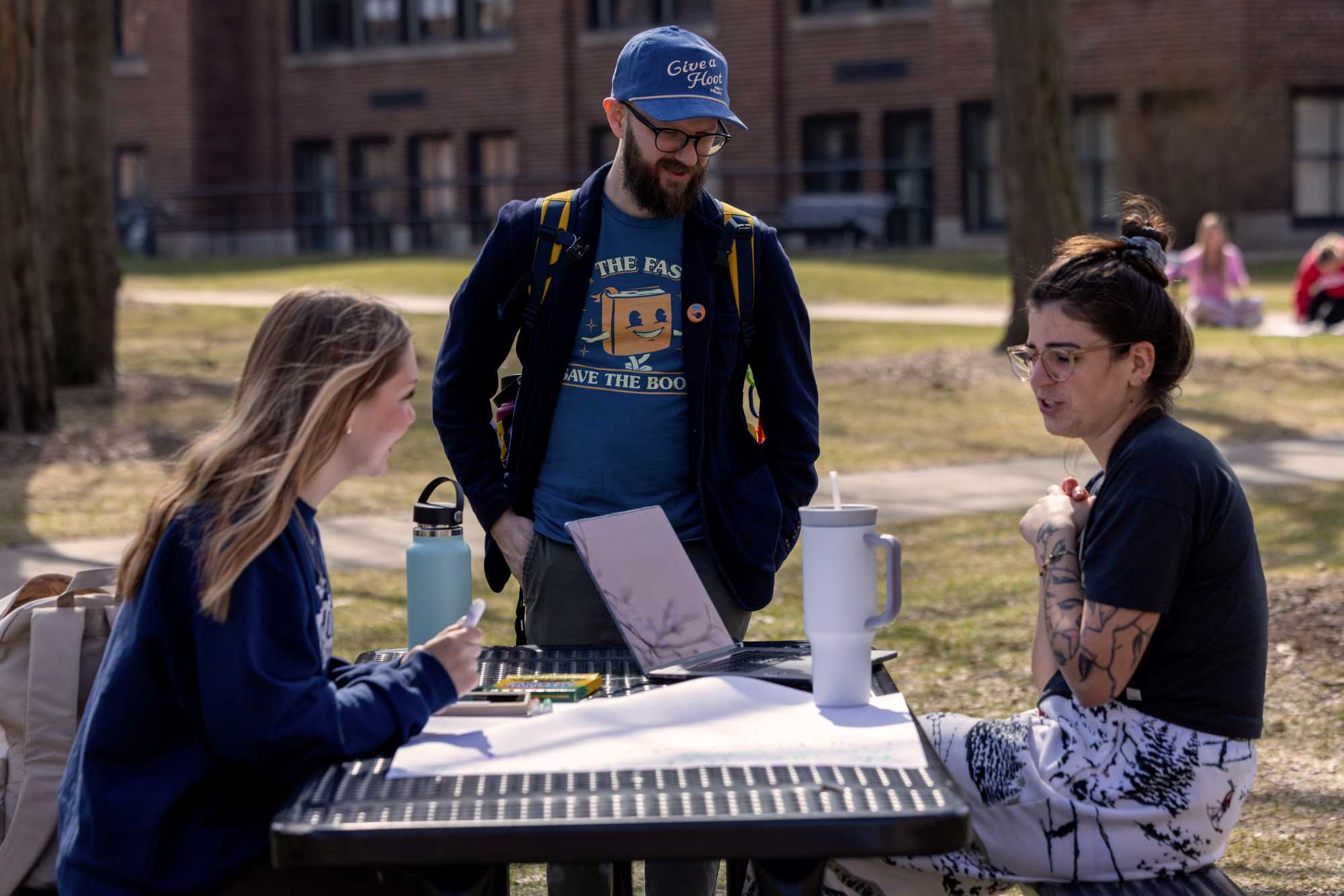 Joseph Spurlock, associate professor of educational studies, capitalized on the unseasonably warm weather by holding class outside.