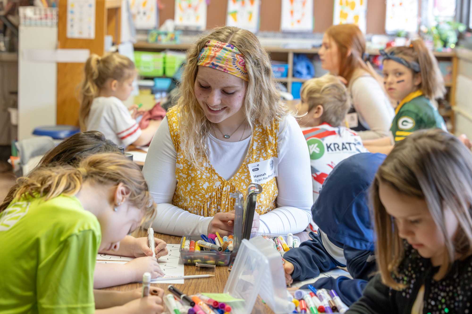 Hannah Kauffman, a junior studying elementary/middle education, was among a group of UWL students who helped children at Summit Environmental School in La Crosse learn about the history and production of maple syrup. The project was made possible by a gift from UWL's School of Education via the Prairie Springs Endowment Fund and the La Crosse Public Education Foundation, among other contributors.