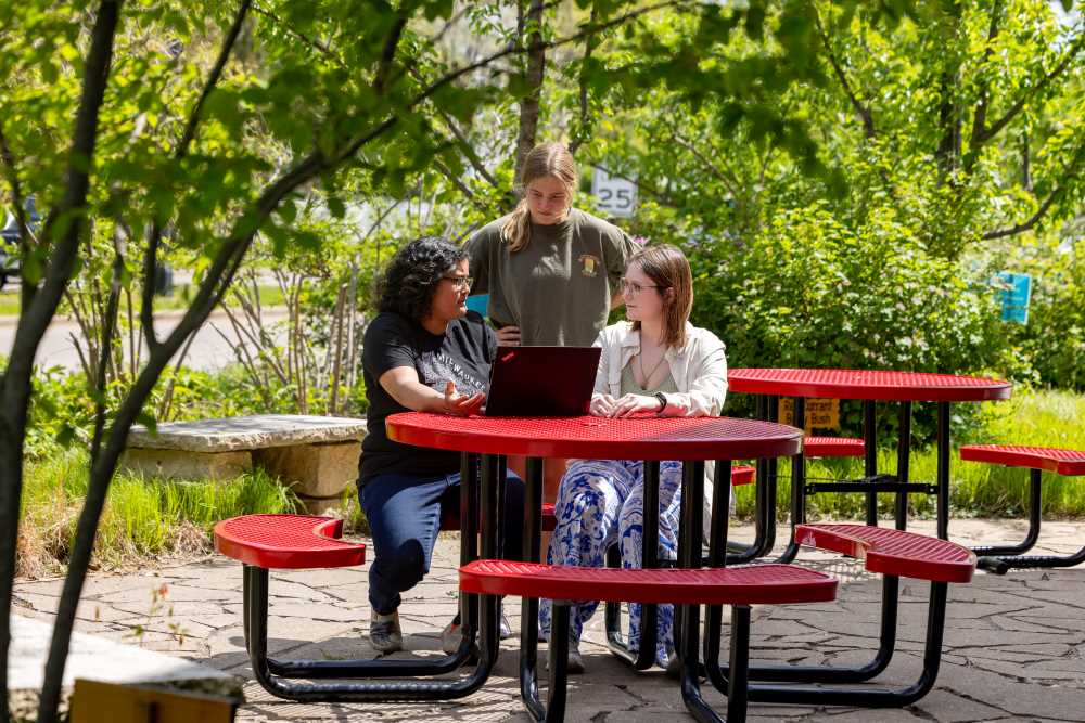 From left to right: Professor of Geography & Environmental Science Gargi Chaudhuri and students Courtney Osmek and Emma Everett created a map allowing community members to more easily identify food resources such as community gardens and food pantries.