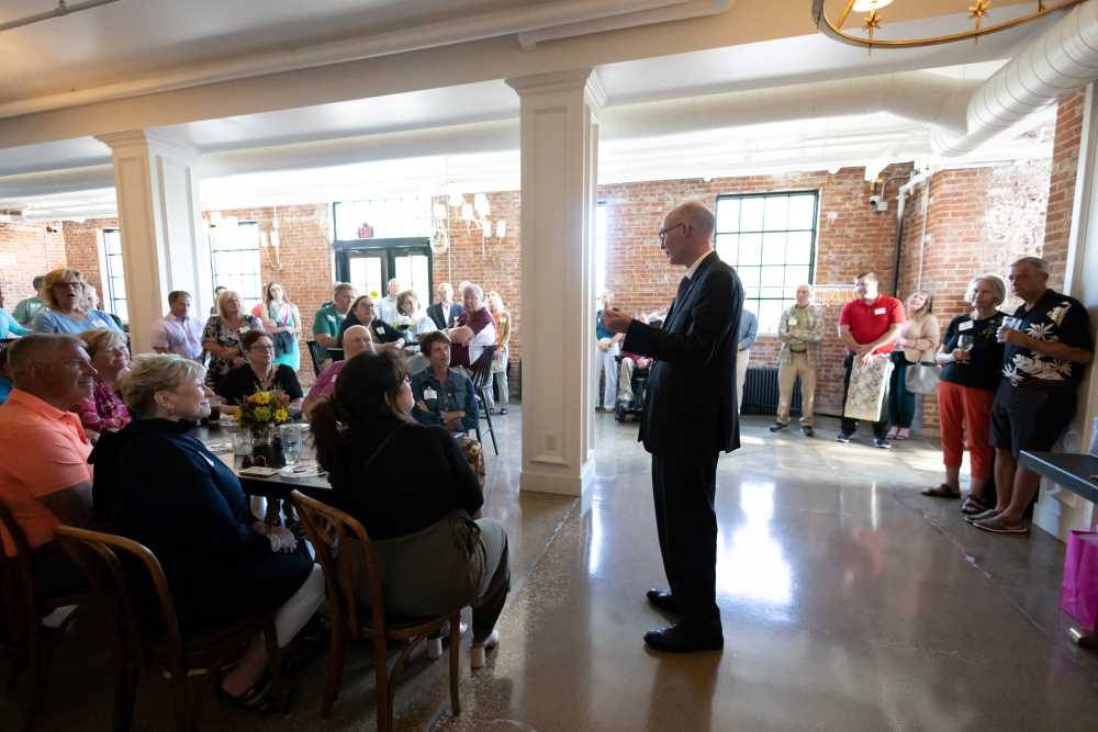 Incoming Chancellor James Beeby addresses the crowd during the UWL Alumni & Friends Foundation Board Social.