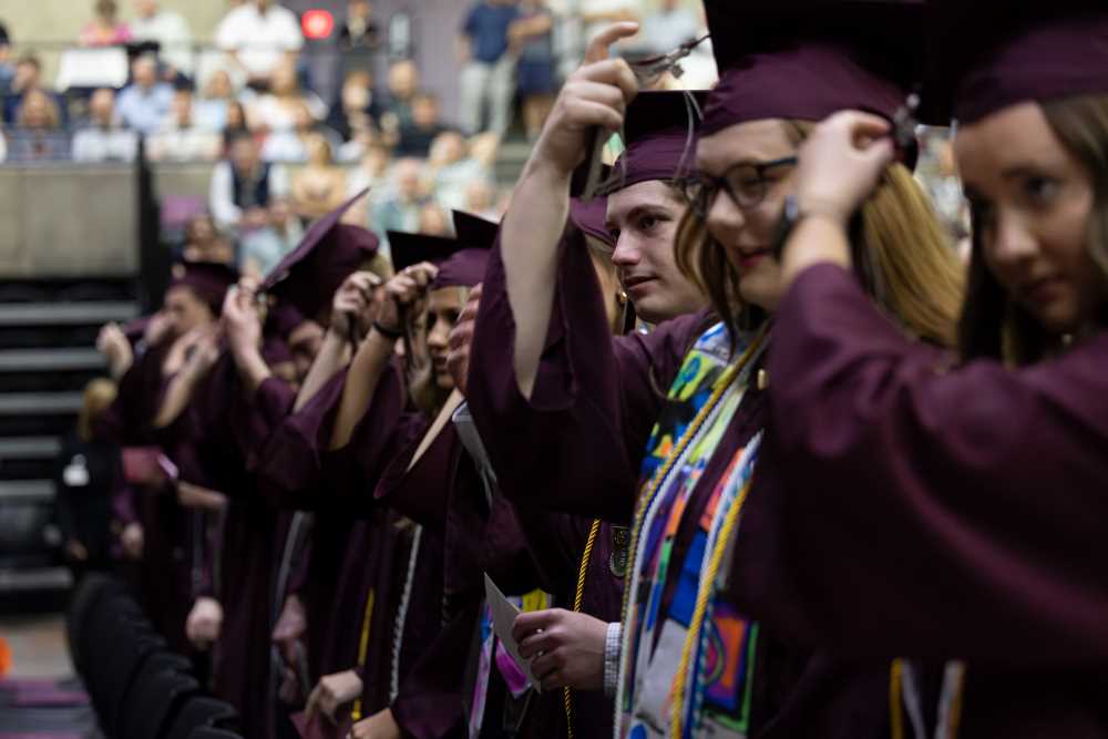 Graduates move the tassels on their caps from right to left, marking the completion of their time as an undergraduate.