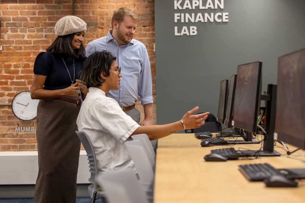 UWL Senior Khang Duong has a double major in finance and business analytics with a minor in math. He is pictured with faculty mentors and co-directors of the Menard Family Initiative Nabamita Dutta and Adam Stivers.