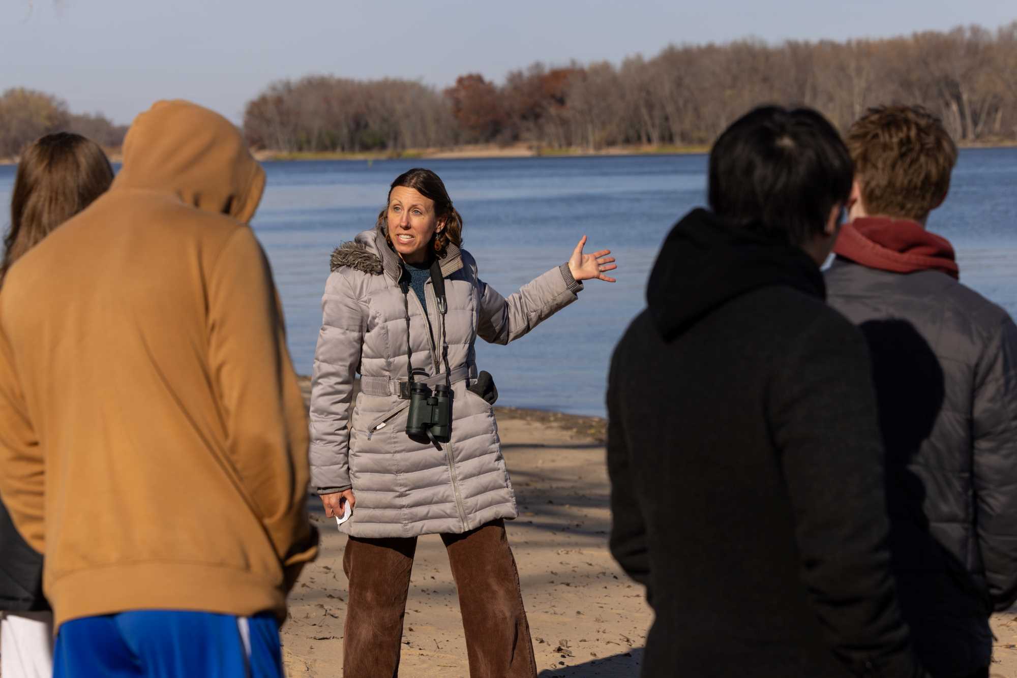 Alysa Remsburg, teaching professor of sustainability and environmental studies, took her class to Pettibone Park to learn about Mississippi River ecosystems.