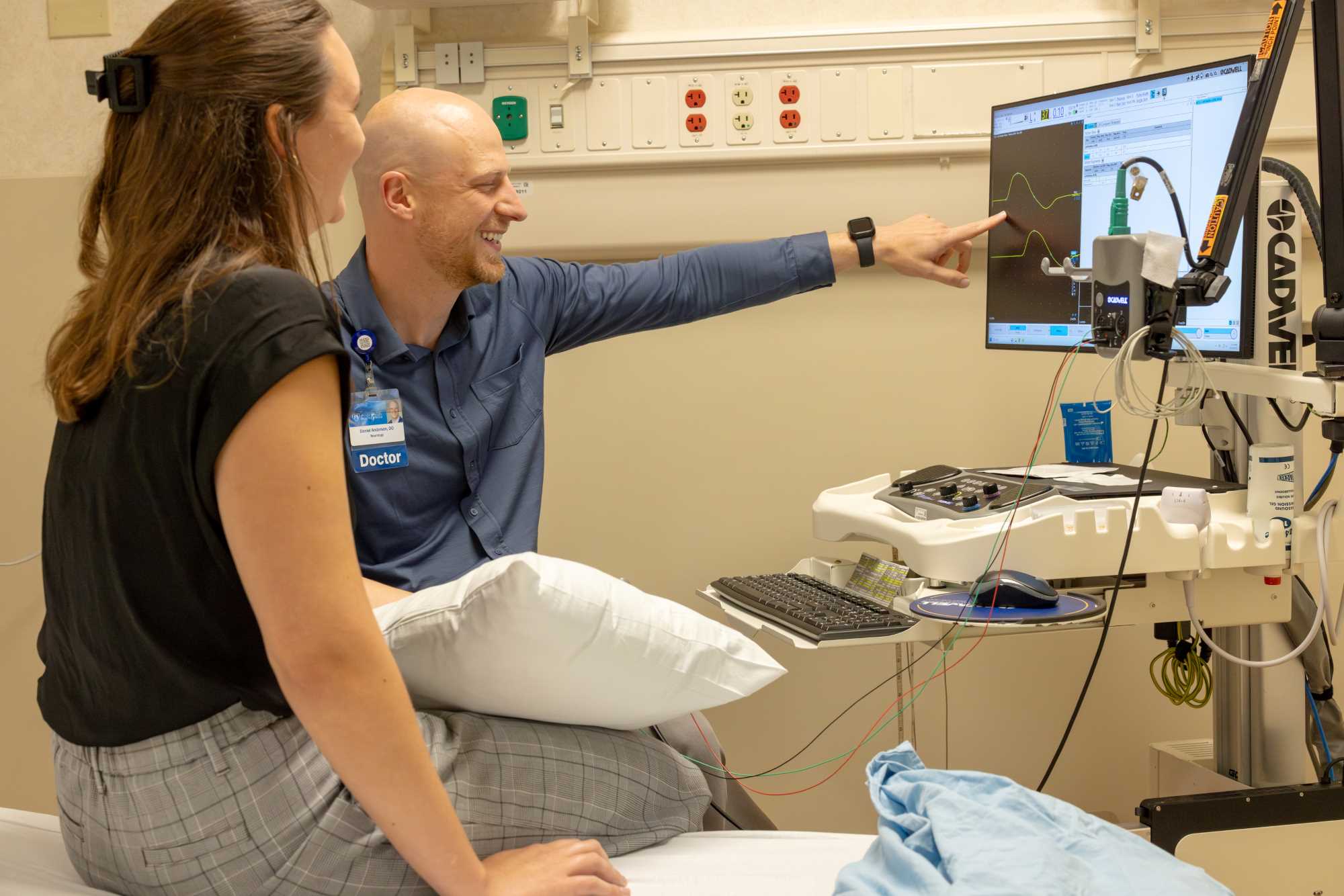 UWL alumni in medical careers are helping train the next generation of healthcare providers in UWL's Physician Assistant program. Here, Dr. Daniel Anderson, '09, works with a PA student in clinicals.