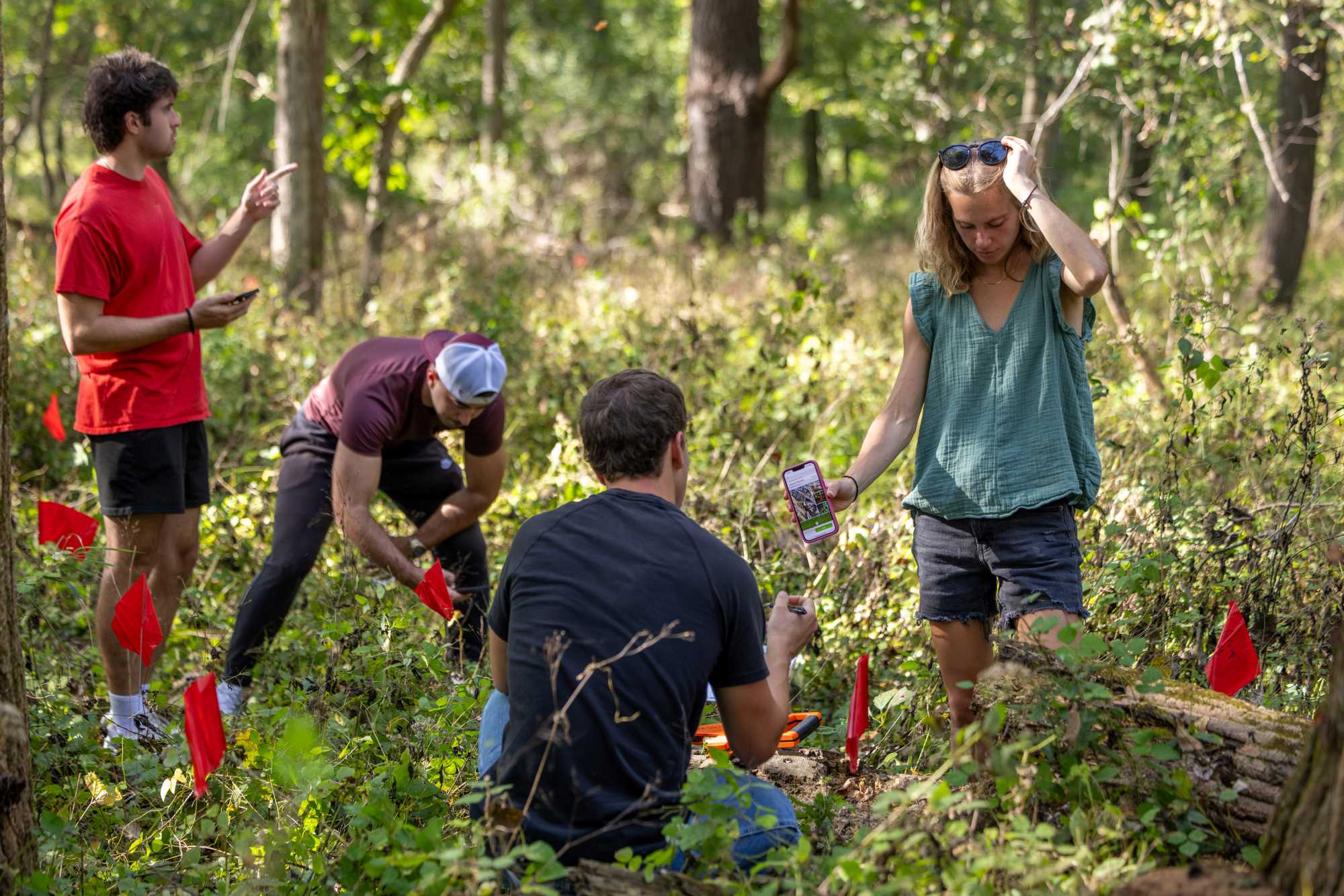Students from Professor Joan Bunbury's biogeography class identify and map plants at one of the ORA Trails in La Crosse.