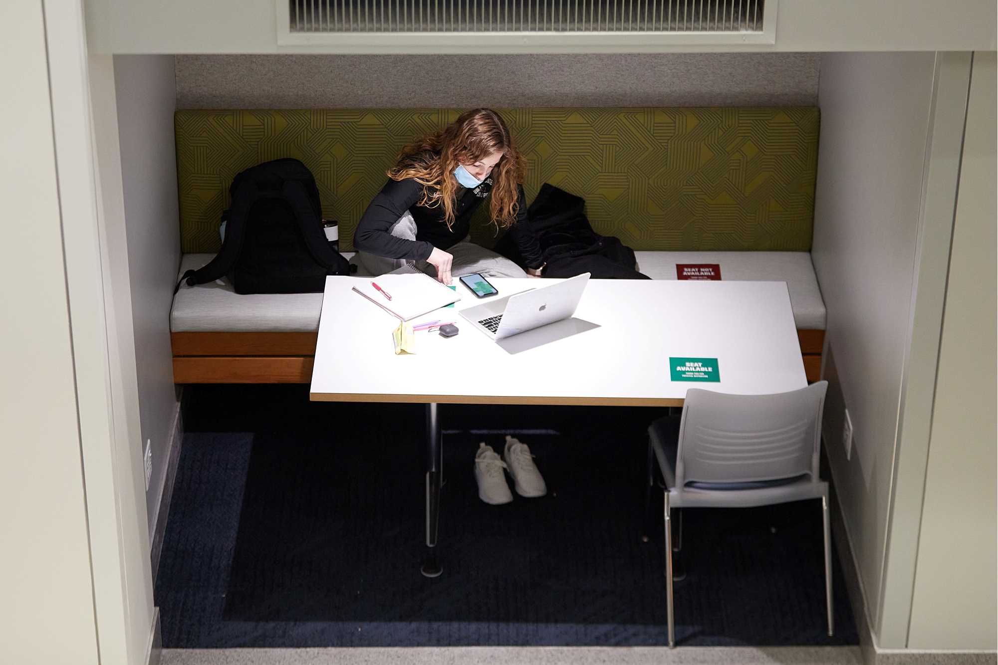 Students were welcomed back to campus in January with social distancing and masking protocols.
