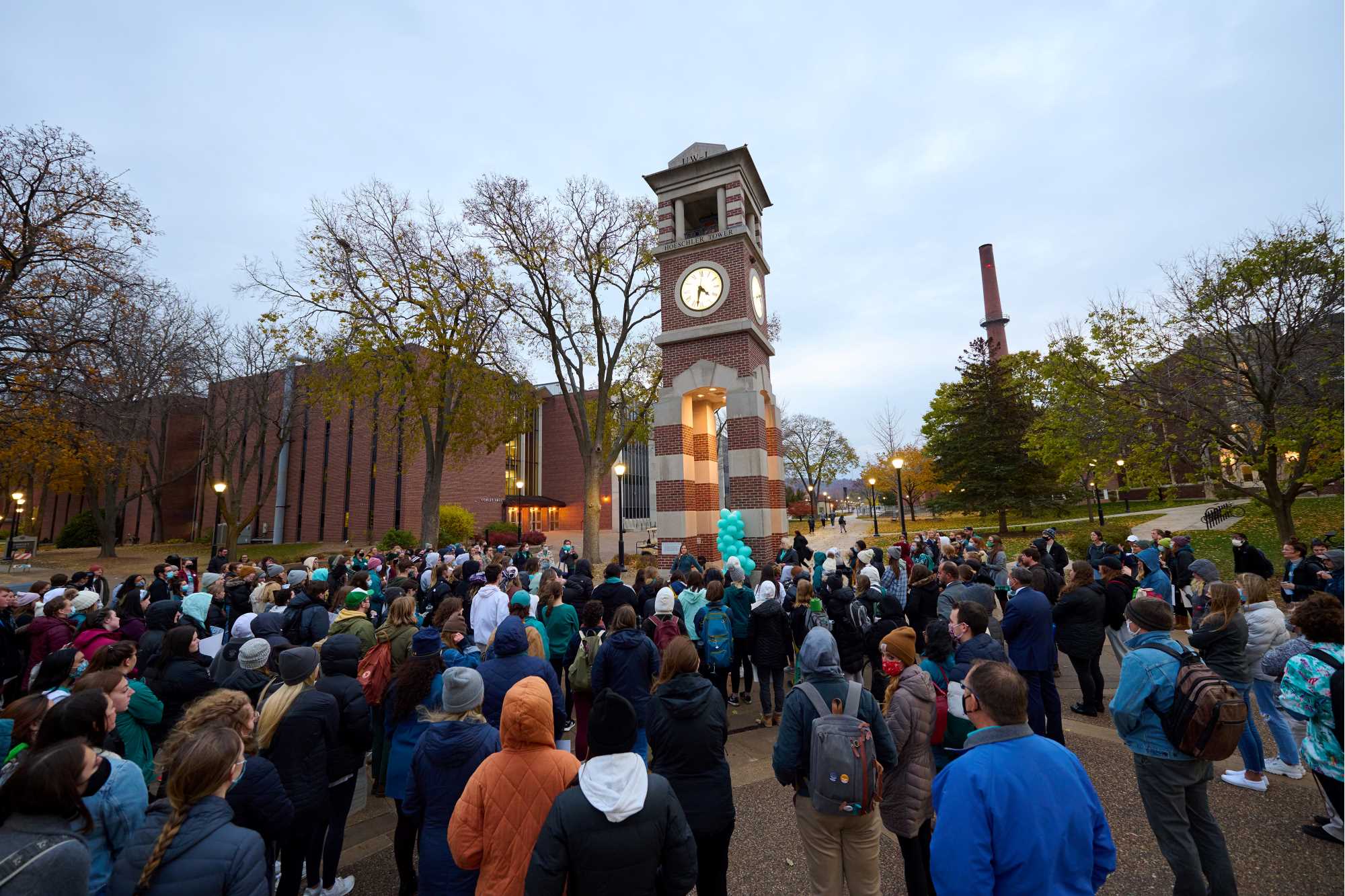 UWL students hosted a speak out and march to support sexual assault survivors at Hoeschler Tower.