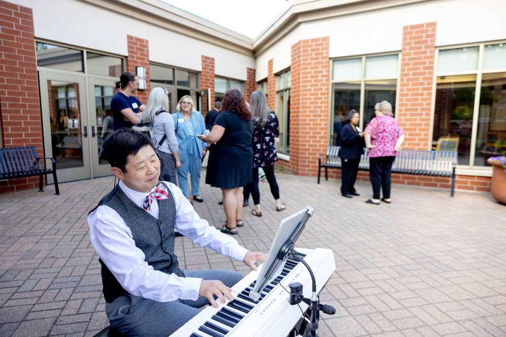 Eddie Kim, UWL associate professor Mathematics & Statistics, plays piano during the Regents reception Thursday evening.