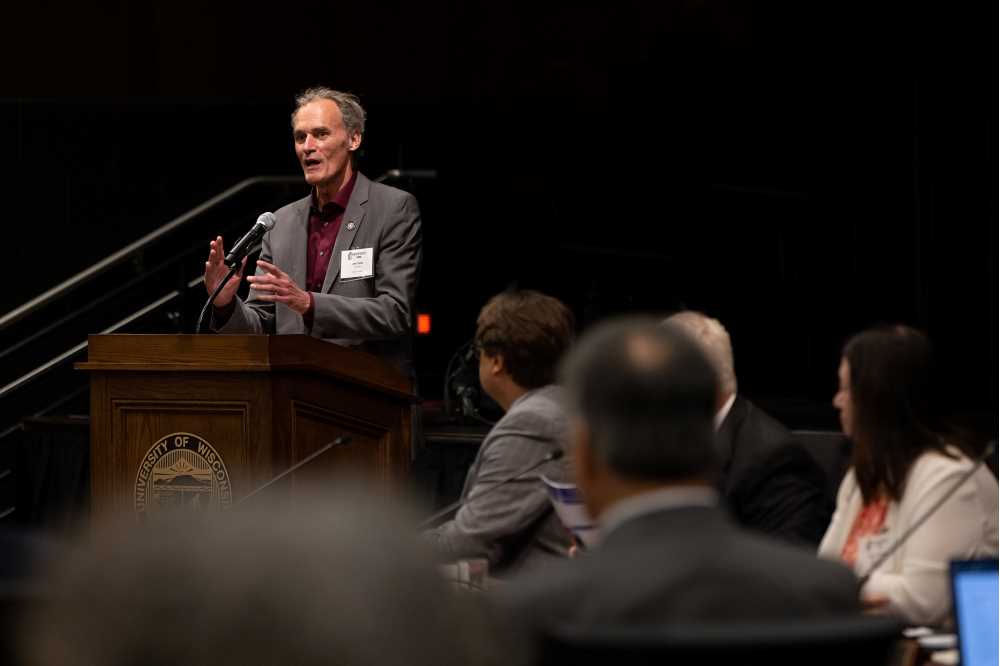 UW-La Crosse Chancellor Joe Gow presents to the UW System Board of Regents Thursday, July 6, in the UWL Student Union.
