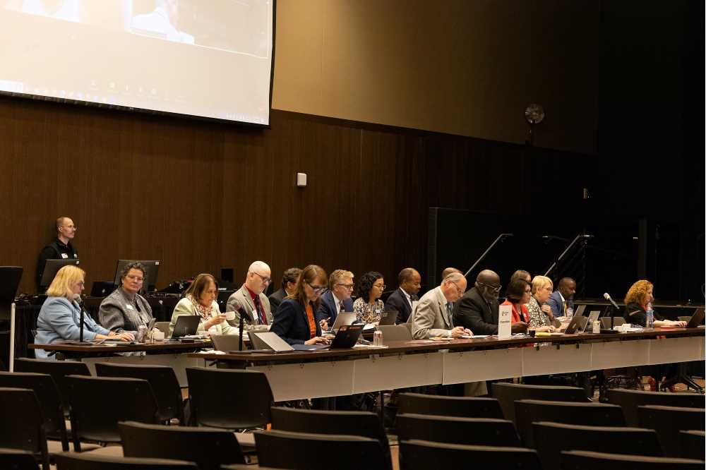 Johannes Britz, interim senior vice president for Academic & Student Affairs, speaks during the full board meeting.