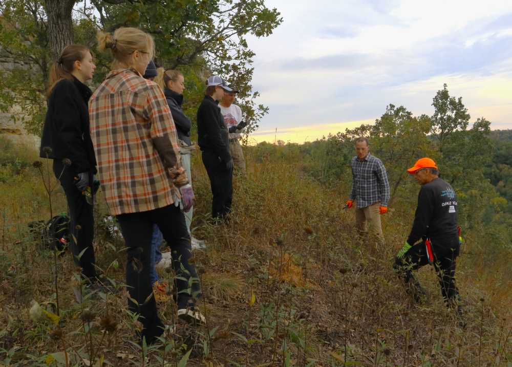 The class, working alongside the Prairie Enthusiasts and Friends of the Blufflands, spent several days in October rehabilitating sections of Lookout Prairie, Sand Holland Prairie and Stry Prairie — harnessing their classroom knowledge to help address a community problem.