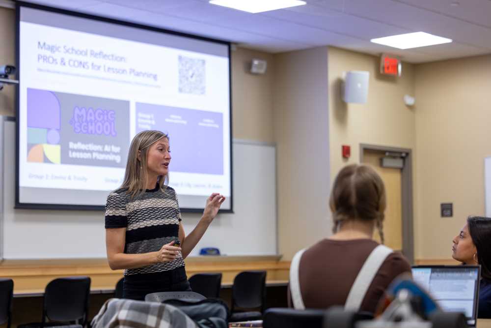 “It is our responsibility in the School of Education to prepare future teachers for the realities they will face in their own classrooms,” says Kimberly Morris, associate professor of Spanish and World Language Education. “AI isn’t going away. Current and future educators need to know how to use it effectively and ethically.”
