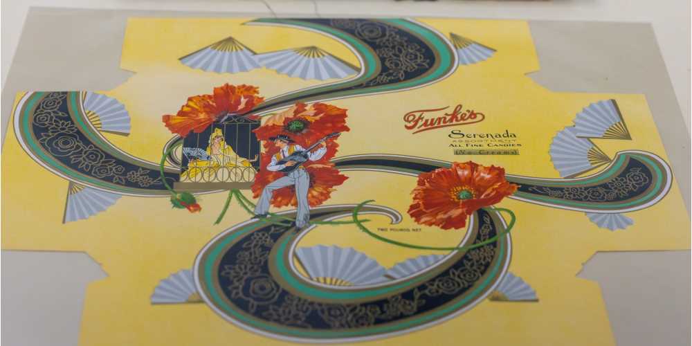 Most recently, students have turned their attention to La Crosse’s own chocolate history by examining 100-year-old artifacts — advertisements, receipts, maps, photographs, newspaper clippings and original candy box wrappers — from the former Funke Candy Factory. Despite its small-town location near Riverside Park, Funke’s chocolates were wildly popular and widely available throughout the country during the 1920s. With the Great Depression, the company declined, and its downtown building now houses the Charmant Hotel.