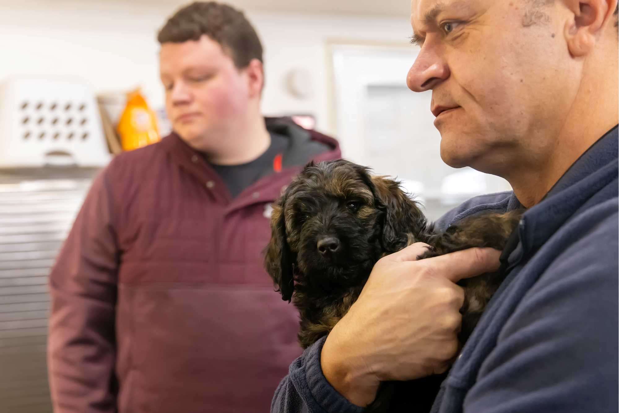 Small but mighty. Officer Bear, UWL's new emotional support dog, gets to know UWL Police Chief Allen Hill.