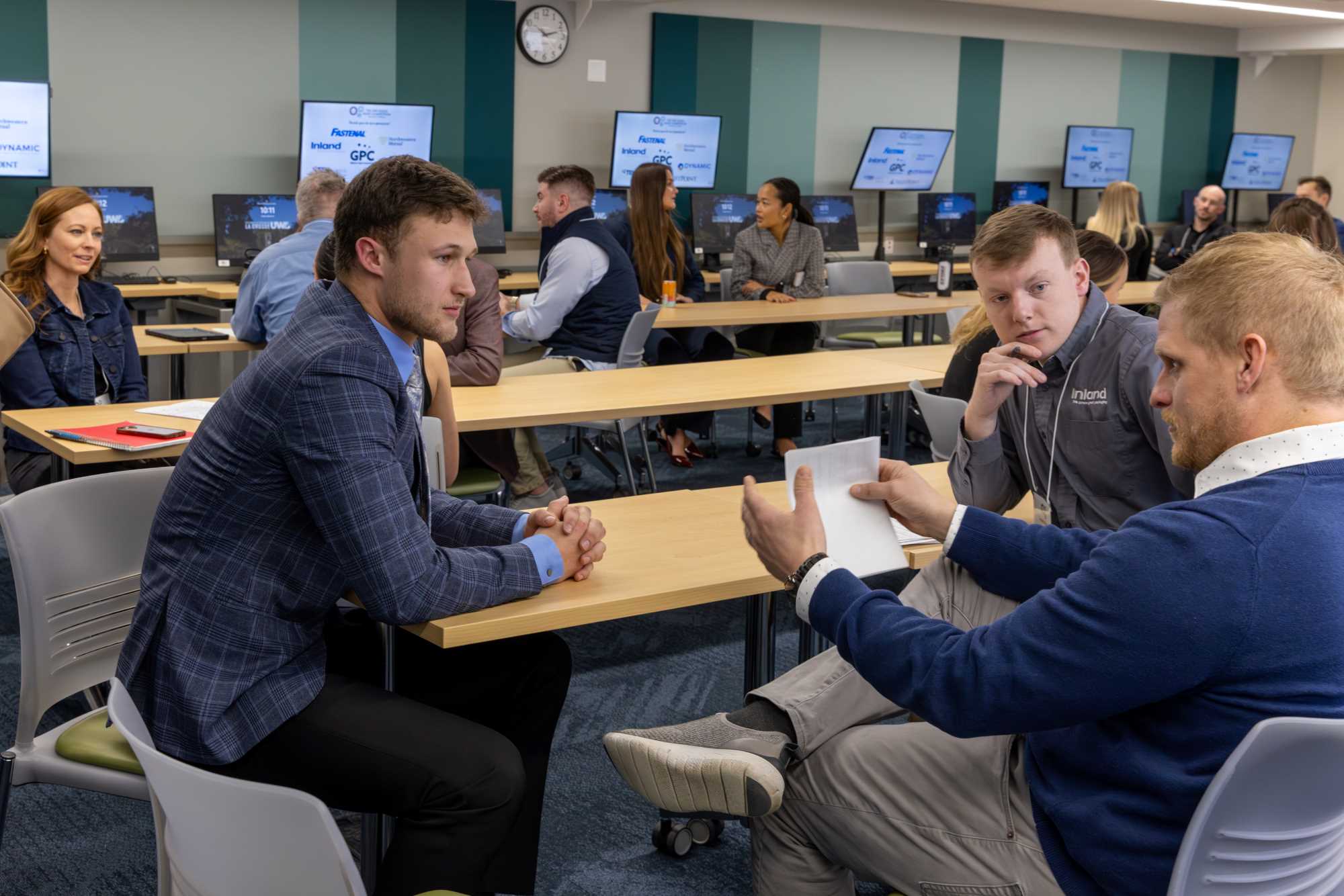 CBA Students meet with judges to review their sales pitches.