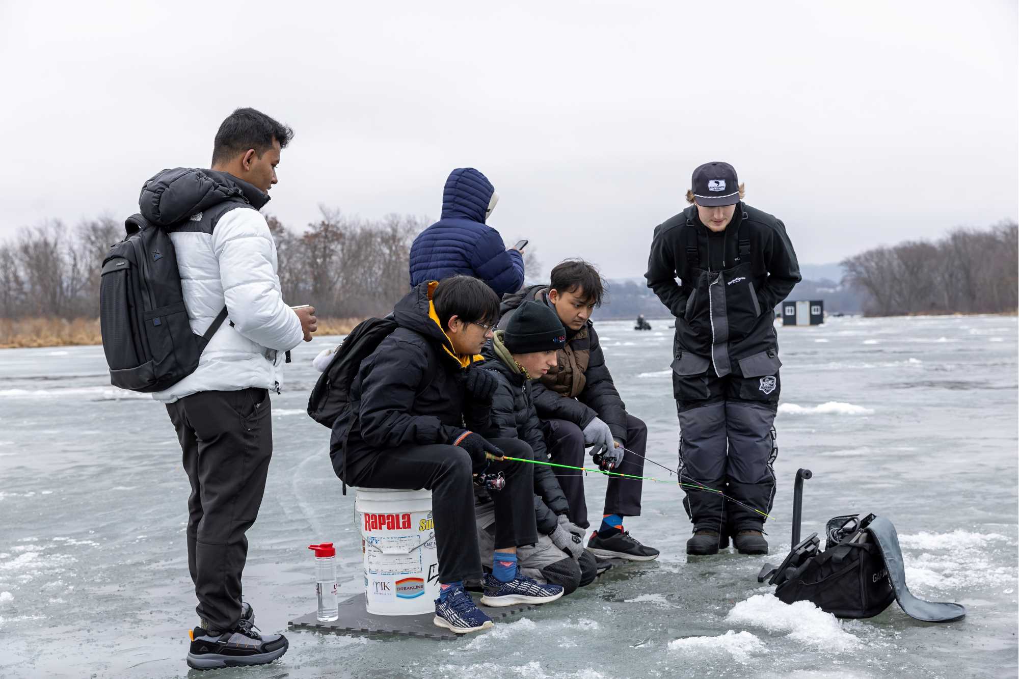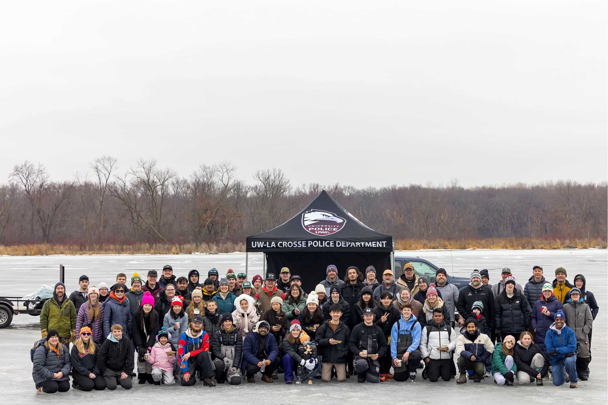 UWL Police, along with UWL's Fishing Club, assisted international students during a day of ice fishing on Lake Onalaska