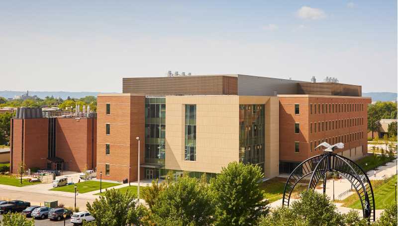 This project has been divided into two construction phases of an eventual replacement of Cowley Hall, the UW-La Crosse science instruction facility. Phase I designed and constructed a new 189,490 GSF building sited on an existing surface parking lot located immediately north of the existing campus science building (Cowley Hall). This new facility consists primarily of the spaces in a science facility that typically requires a higher level of infrastructure than a standard academic building. Phase II of the project plans to demolish the existing Cowley Hall and construct a 91,273 ASF/169,200 GSF structure that will satisfy the balance of the program needs.