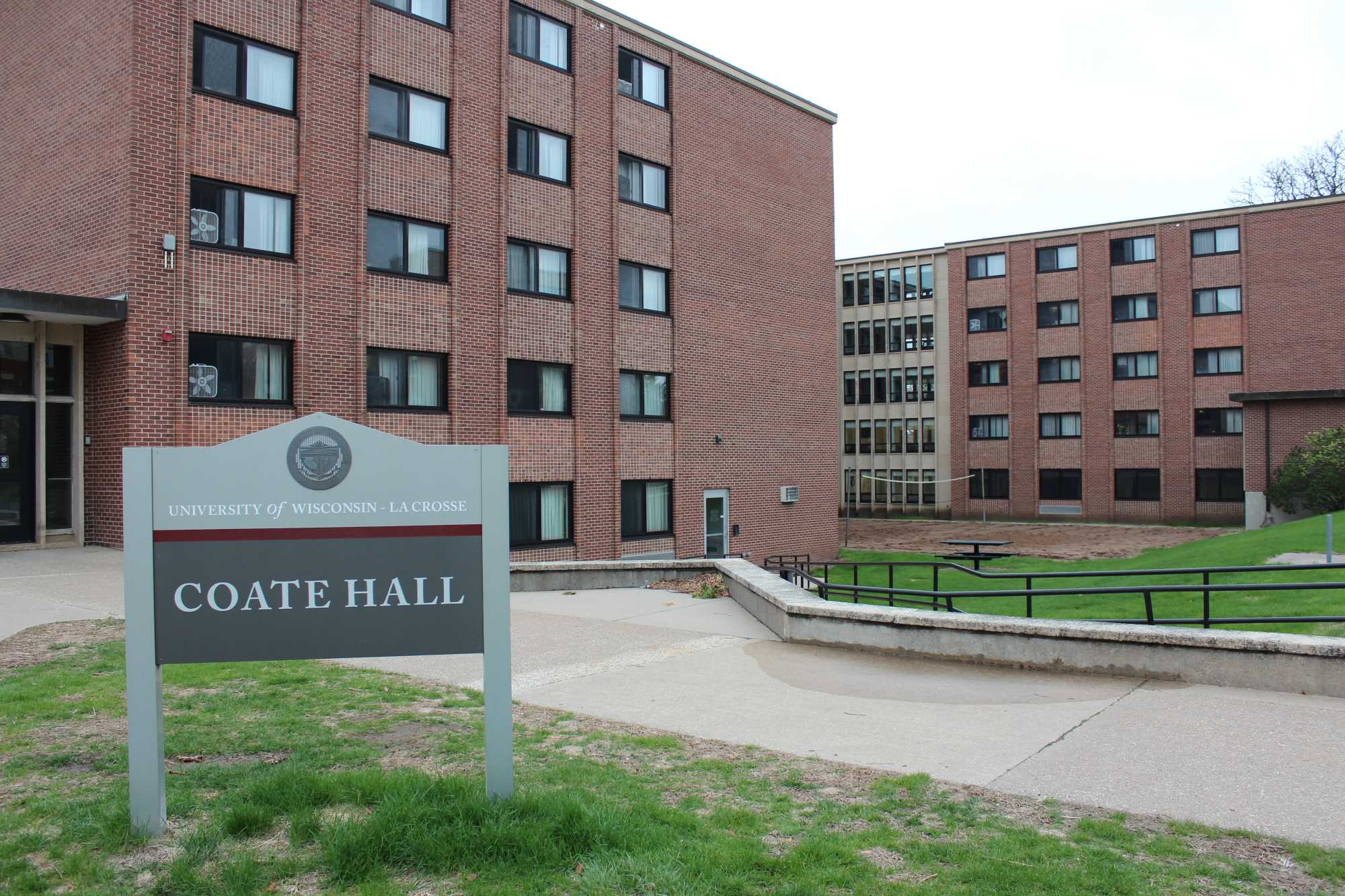 Coate Hall is a cube-style residence hall that is home to 380 residents, primarily first year students. It is located on the northwest side of campus on La Crosse Street, and close to Whitney Dining Center. The majority of rooms are standard double rooms, however there are also traditional triple rooms in the corners of each cube. Each cube is single-gendered with 16 rooms and a shared bathroom. There are study lounges between the cubes.
