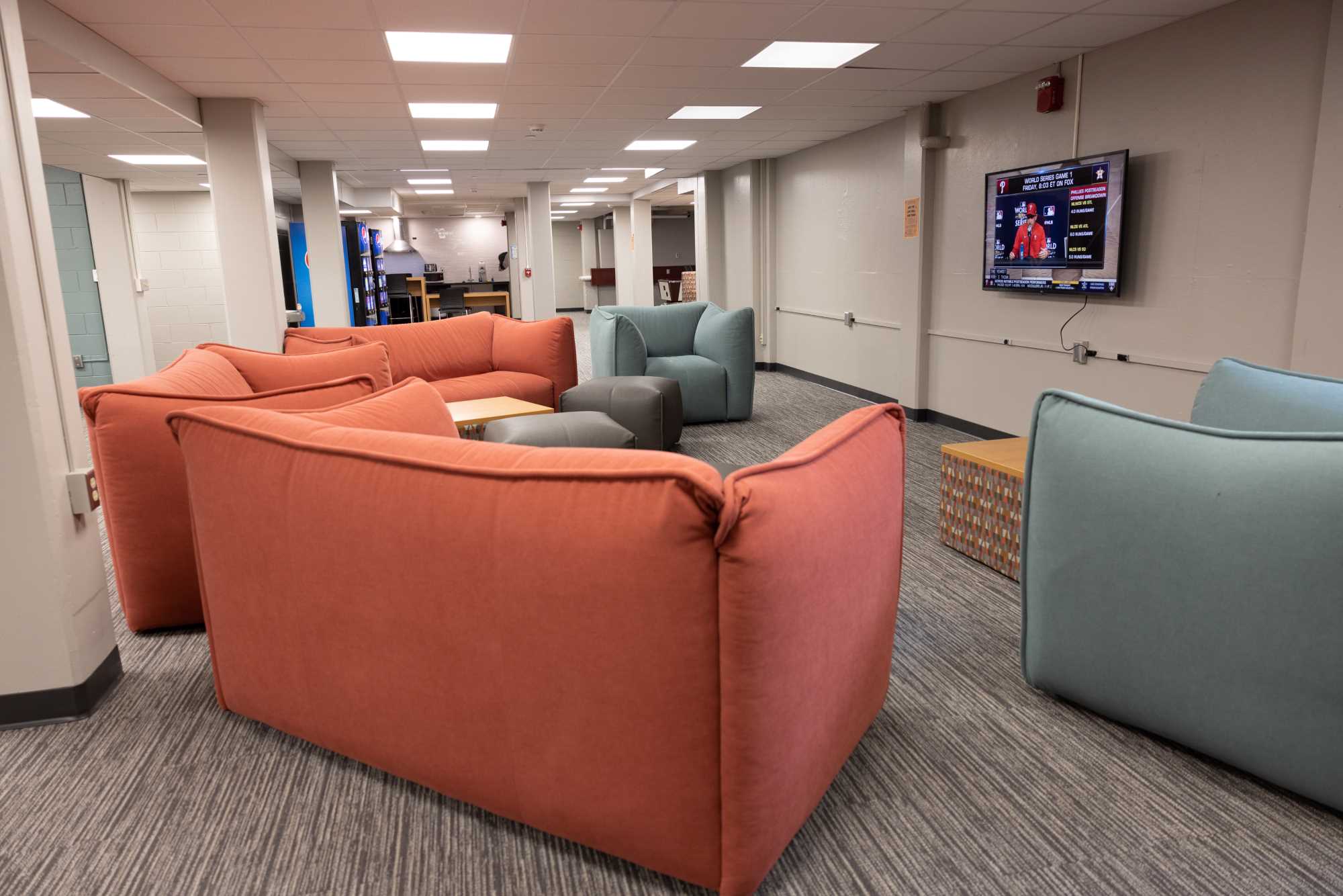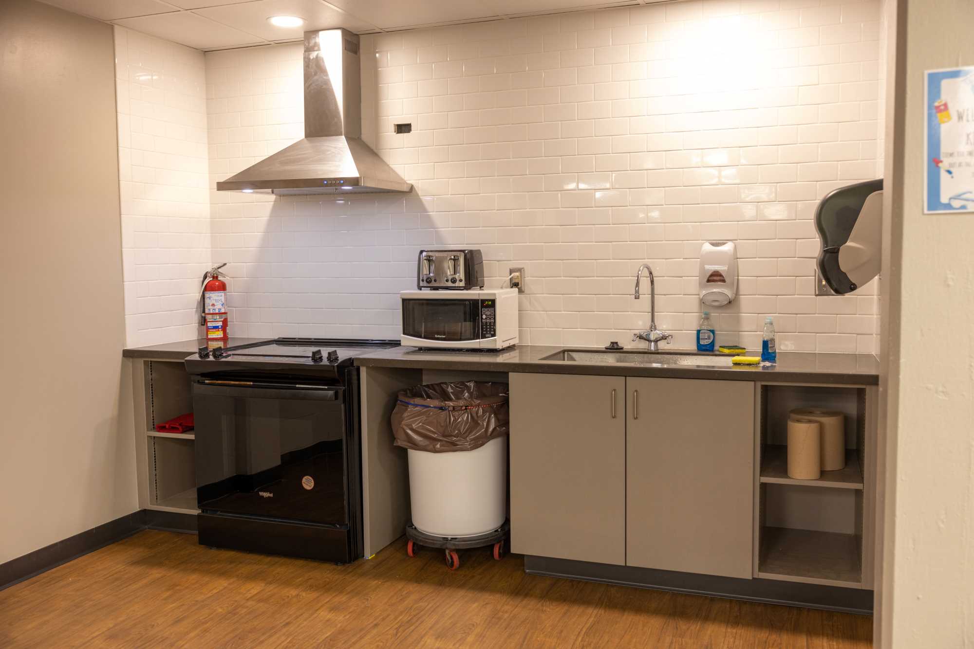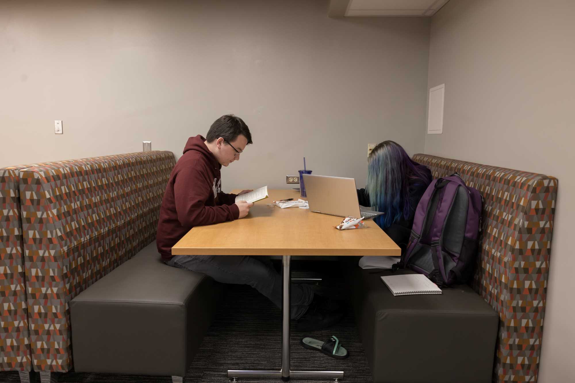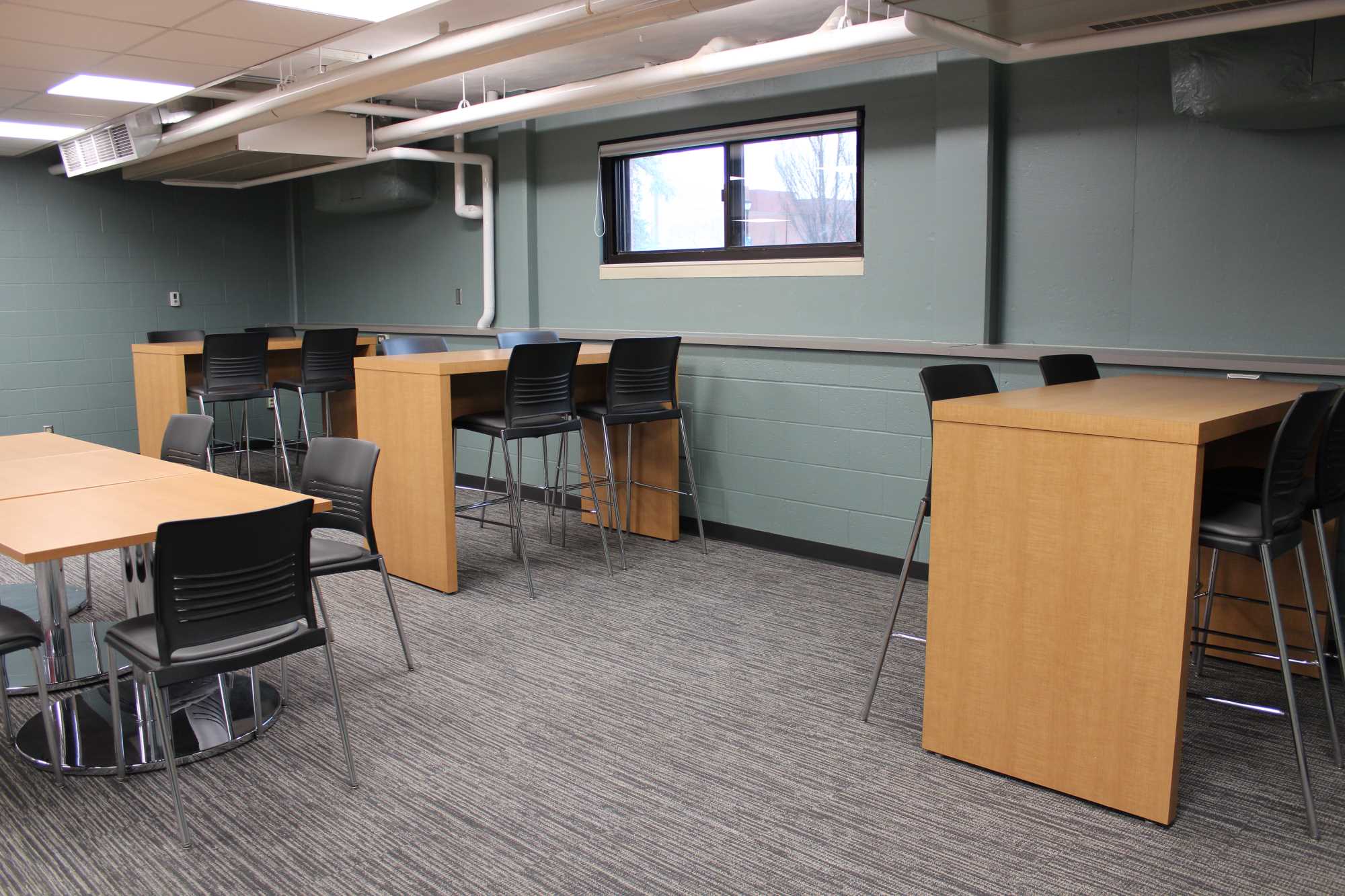 Laux Hall is a wing-style hall with 210 residents, primarily first year students. It is located on the northeast side of campus. The students on the floors are mixed by gender but not within the same room. There is a lounge on each floor. The kitchen, study areas, pool table and TV area are in the basement. Laux Hall bathrooms have been renovated and there is an all-gender bathroom on each floor. The rooms have updated furniture, paint, carpet, and lighting.