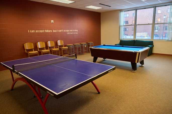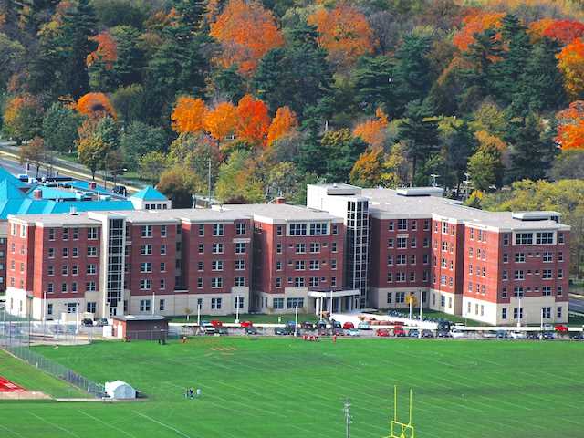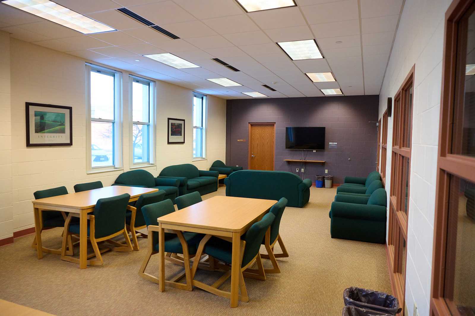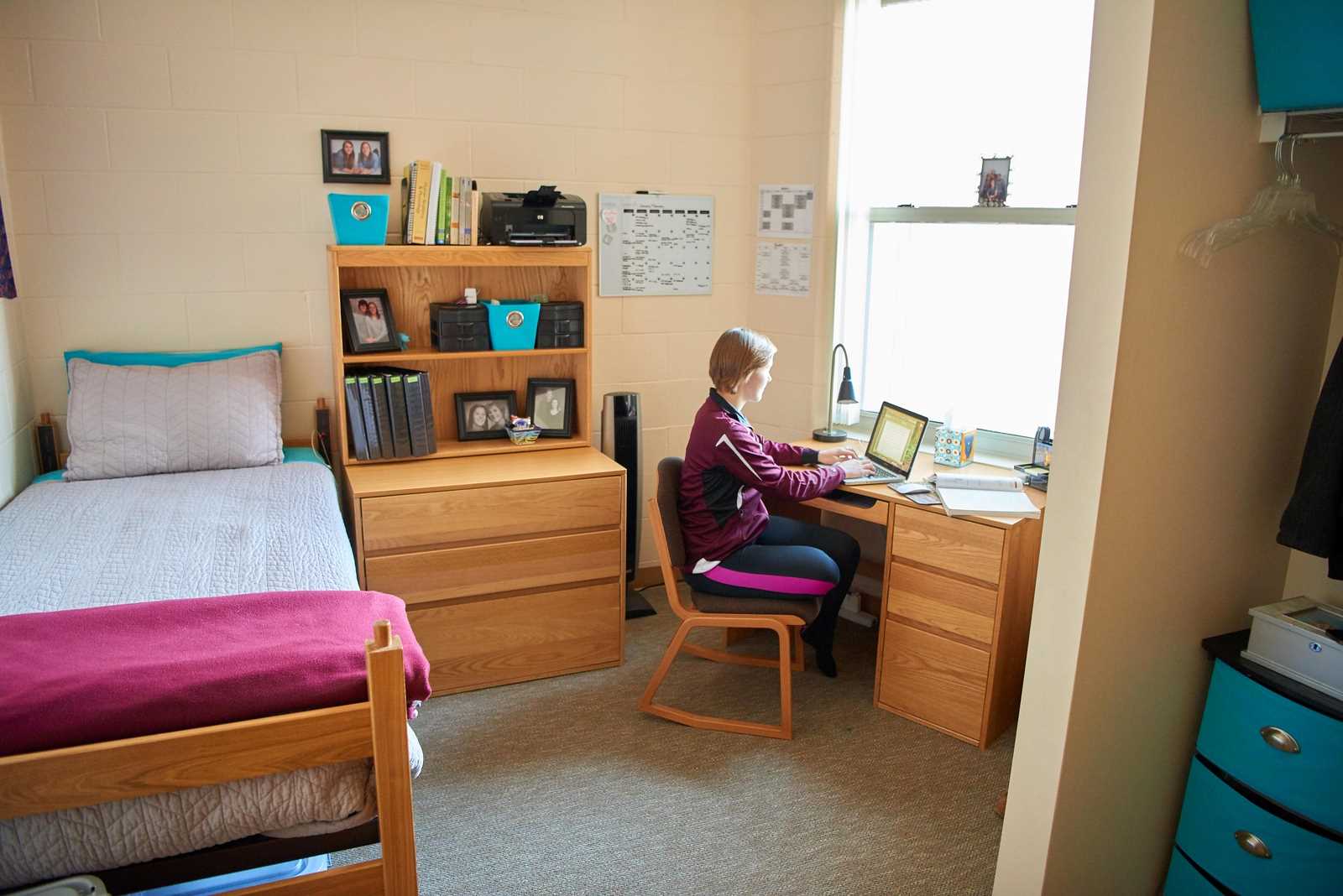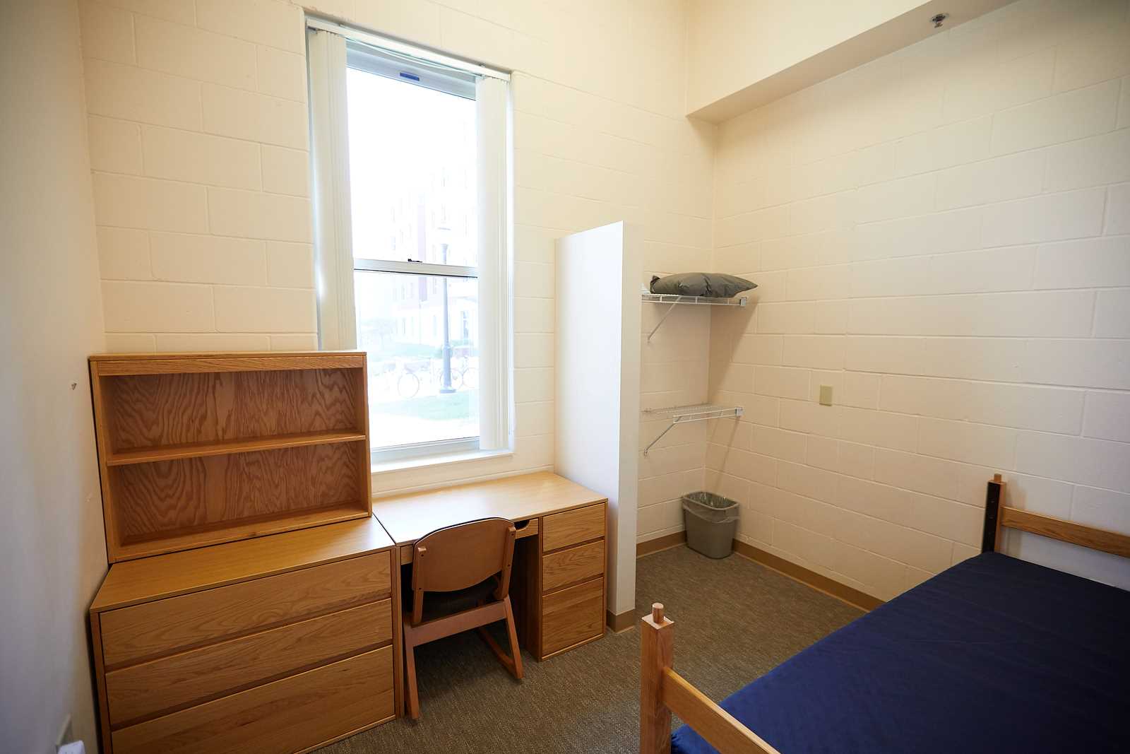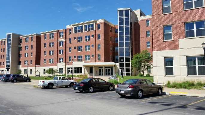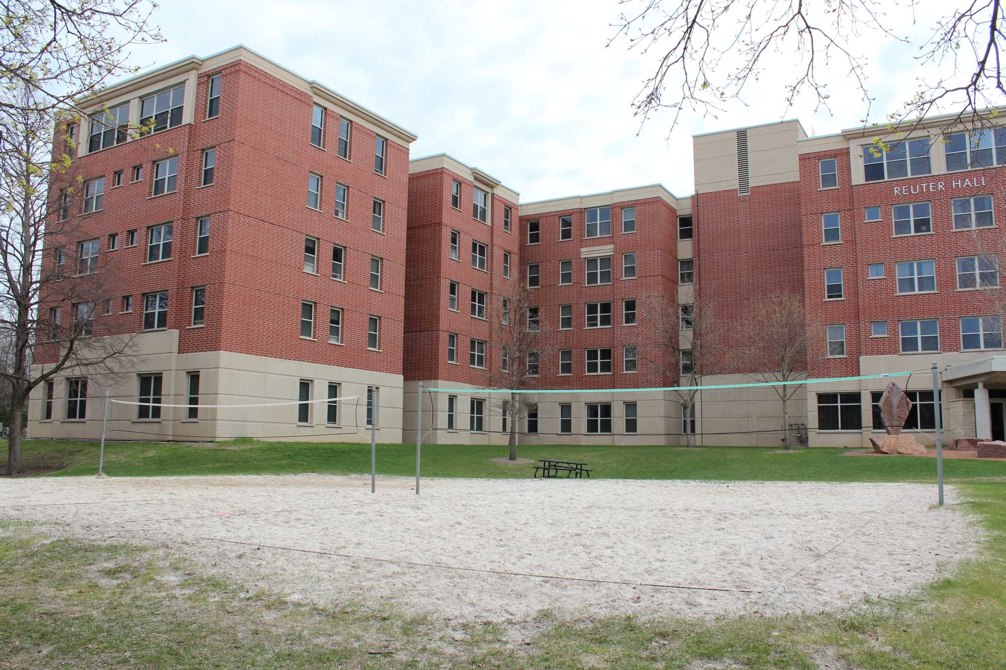 Reuter Hall is an apartment-style building which is home to 350 upper class students. It is located on the northeast side of campus. An apartment consists of 4 single rooms and a common kitchen, living room and bathroom. There is a lounge with a TV area and a game room on the first floor.