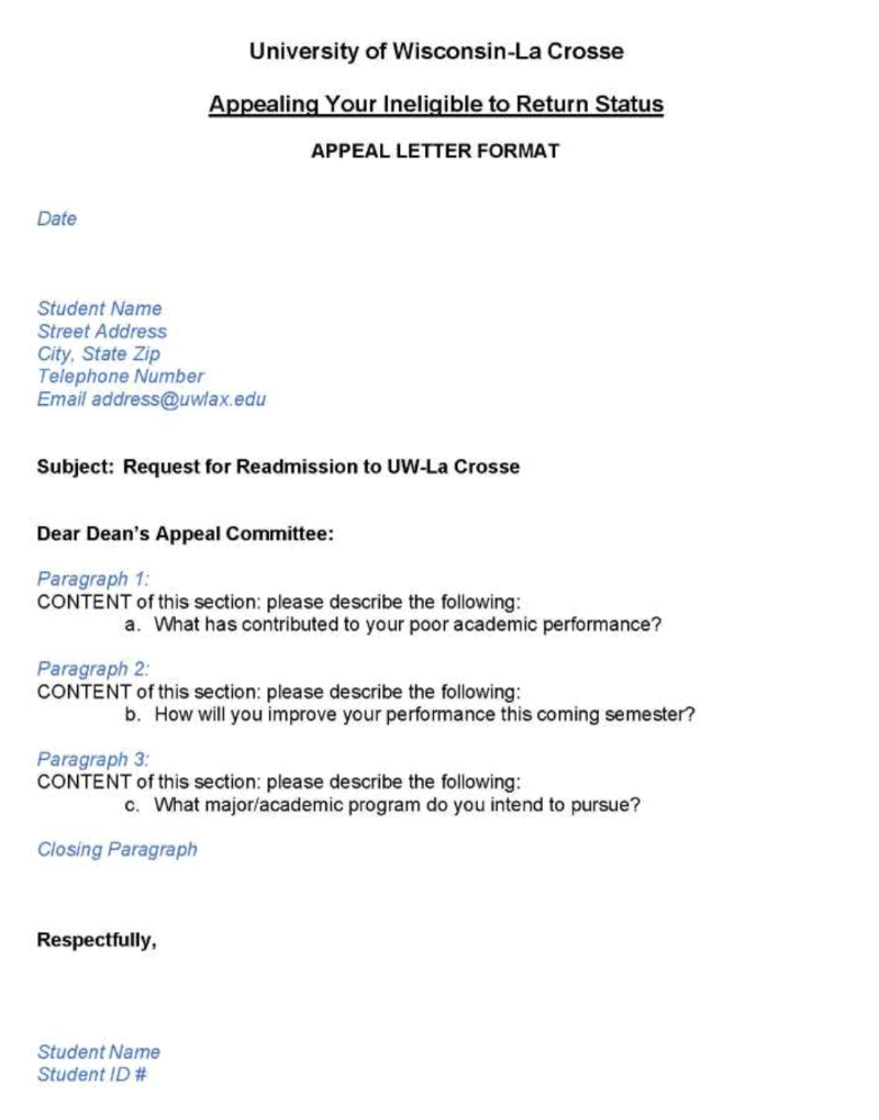 Academic Appeal Suspension Sample Letter