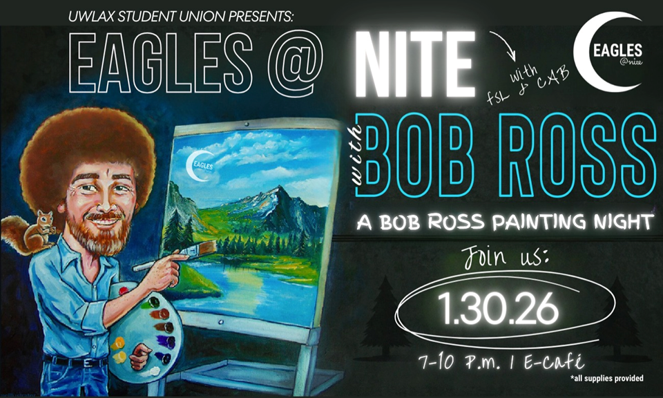 There’s always something happening on Friday nights at UWL! From games and live entertainment to themed events and giveaways, every week brings something new. Grab your friends and join us at Eagles @ Nite and make the Student Union your Friday night spot!