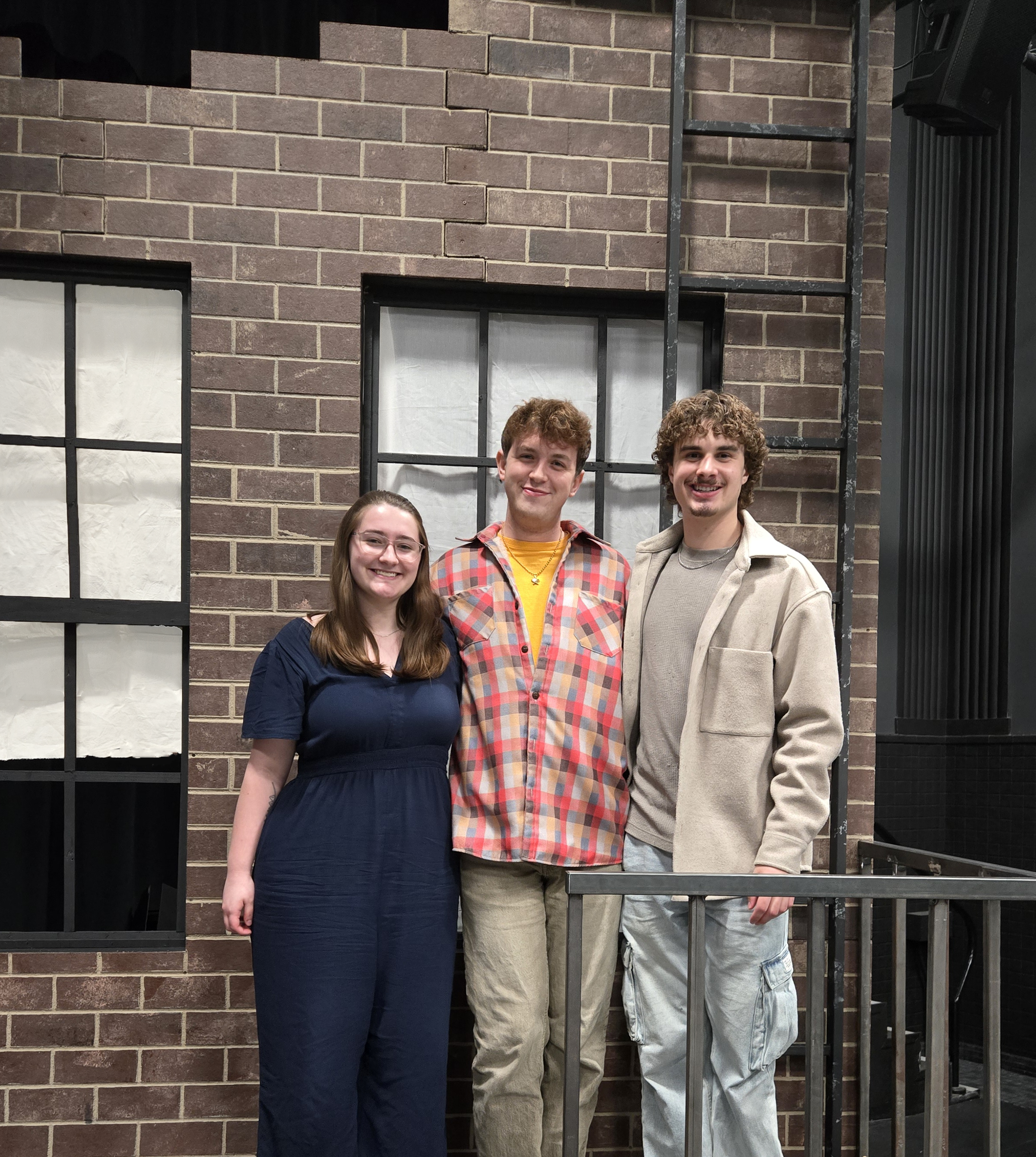 The next production in the 2025-2026 Theatre & Dance season is Jonathan Larson’s semi-autobiographical musical tick, tick…BOOM! The Department held auditions last April, and the show began rehearsals on September 29. The company has been at work Monday through Friday from 6:30-9:30 p.m. and will soon begin technical rehearsals—where the production elements (lighting, sound, props, costumes) get incorporated into the show. The production has a cast of three. SEAN PETERSON is a junior with a double major in Musical Theatre and Communication Studies. GAVIN MULLER is a senior Performance major with a minor in Stage Management. ELLIE HEMMING is a senior Musical Theatre major with minors in Stage Management and Dance. The cast found a few minutes before rehearsal one night to give us some insight into the show, the process, and themselves. The interview has been lightly edited for clarity.